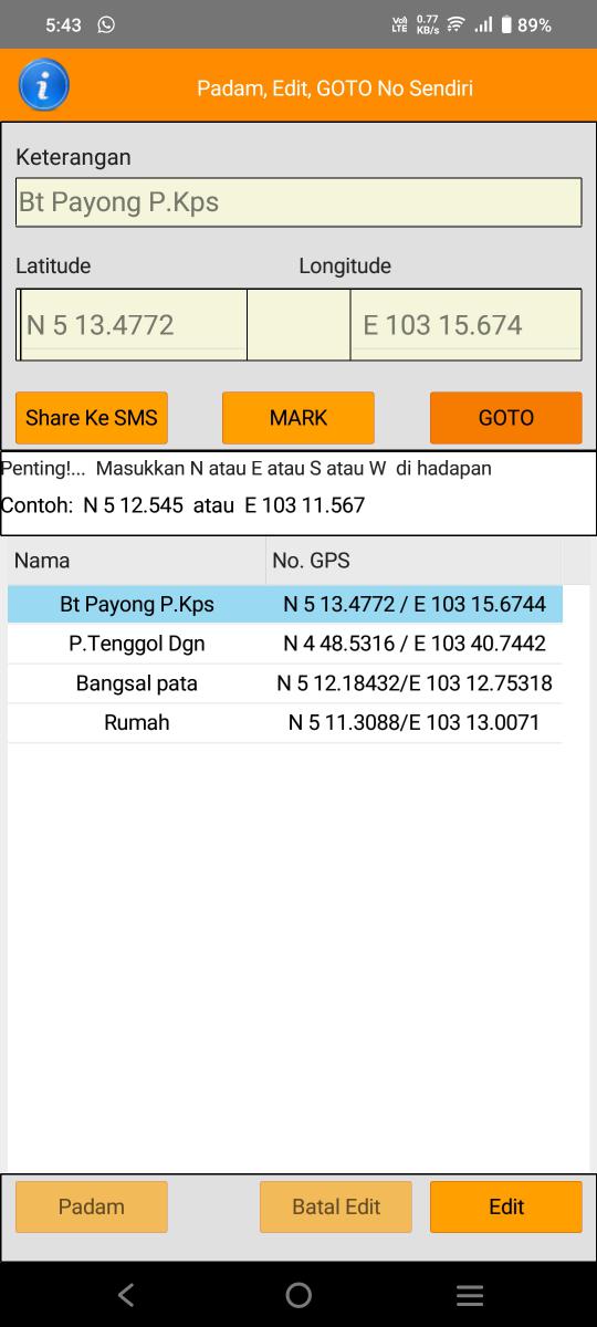 dan sms. Bagi pengguna kaw. selain K.Terengganu